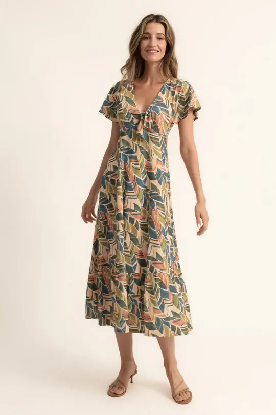 Vestido midi estampado hojas